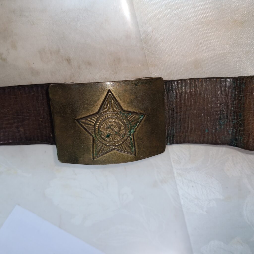 旧ソ連軍のバックルと皮バンド(ソ連崩壊後,サンクスペテルブルグにて)