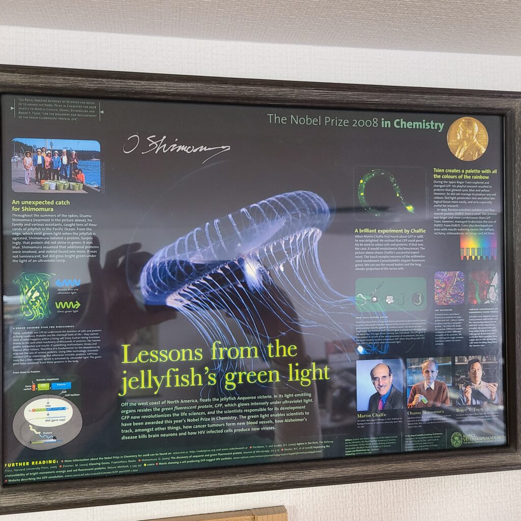 ノーベル化学賞受賞者 下村 脩博士の直筆サイン入りのノーベル賞受賞記念ポスター(ノーベル財団が作成)直接本人からプレゼントされました